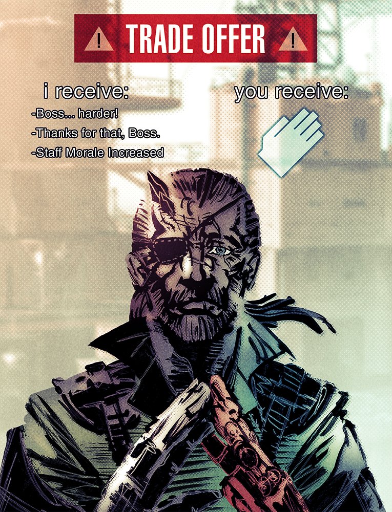 TRADE OFFER A i receive: you receive: -Boss.. harder! -Thanks for that, Boss. -Staff Morale Increased Poster Font